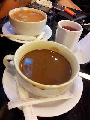 Ordered hot coffee, milk tea and flower tea that comes in a pot.